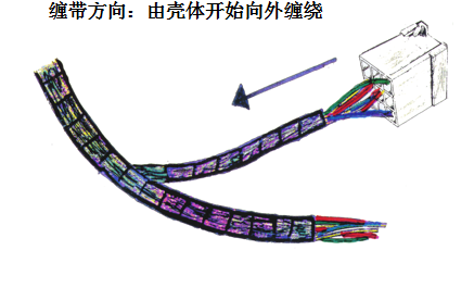 胶带花缠指使用胶带连续对线束进行裹缠,每圈的裹缠间隙一般在 10-25mm 范围内,中间不重叠覆盖。